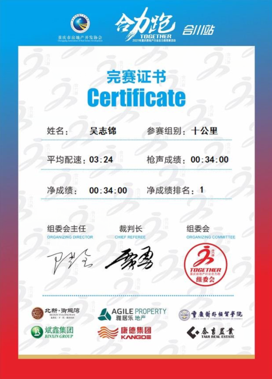 由重庆市房地产协会主办,合川区房地产协会承办,公司作为战略合作单位,斌鑫集团作为合作单位的2021年重庆市房地产行业合力跑,于2021年4月10日在北新御龙湾举行。公司作为战略合作单位全程参与了本项活动,并在本次比赛中取得了优异成绩。