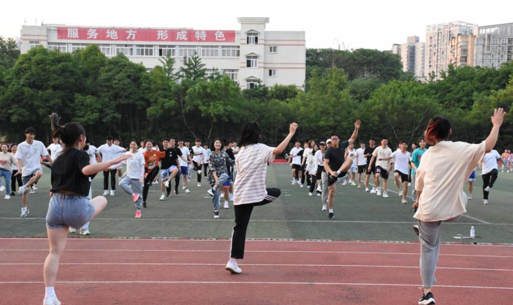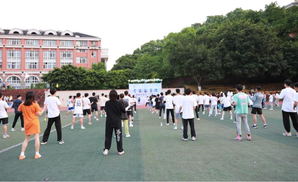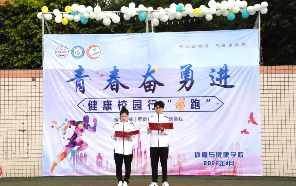 为响应习近平总书记有关推进全民健身,建设体育强国的号召,贯彻落实健康中国2030规划纲要,携手共建活力贸院,大力推行“健康校园行”品牌系列活动。金沙js5588于2022年4月26日晚19:00在合川校区运动场开展了青春奋勇进,健康校园行“耶跑”活动。金沙js5588经理夏思永、党总支书记谢冬、副经理贾勇、学院组织员王艳、团总支书记刘云超以及学院全体辅导员和部分专职教师参与本次活动启动仪式。