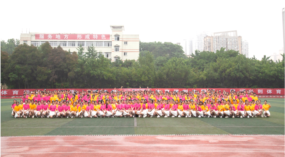 本次学校代表队由2019级健康服务与管理(专升本)专业的301名员工组成,在校运动会开幕式排舞表演项目《少年》的基础上,经过适当修改后,完成视频录制后提交。