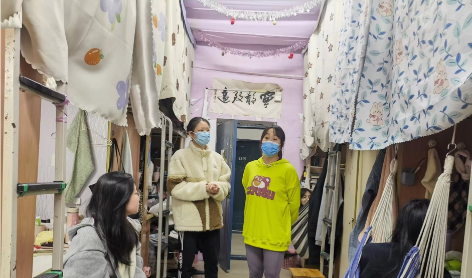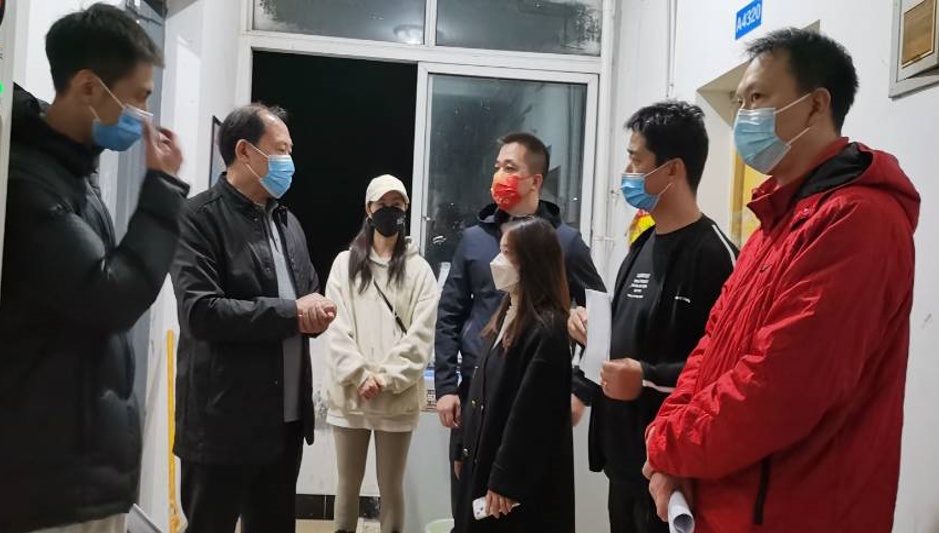 万众一心迎挑战,众志成城战疫情。自2022年11月1日重庆新冠疫情情况通报以后,为积极响应政府号召,严格按照学校要求执行疫情防控工作,及时了解员工的思想动态、学习及生活需求等,确保疫情期间各项工作有序、平稳地开展。11月12日晚21:30,金沙js5588经理夏思永、党总支书记谢冬、副经理贾勇、团总支书记刘云超、全体辅导员、教师代表深入员工宿舍走访慰问学院学子。