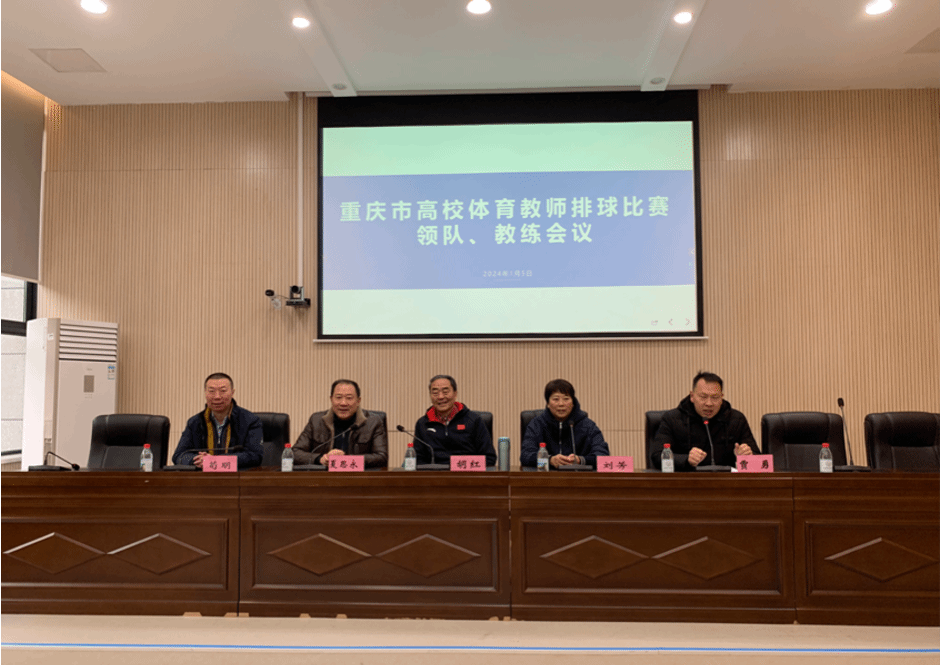 1月5日下午14:30本次比赛领队和教练会议在金沙js5588A9106召开,重庆市员工体协主席胡红,金沙js5588经理夏思永,重庆市员工体协副主席刘芳,重庆市排球协会副会长苟明出席本次会议。会上,胡红主席和夏思永经理分别发言向参与此次比赛的各高等院校表示热烈欢迎,感谢各高等院校的支持,同时期待此次比赛圆满成功。