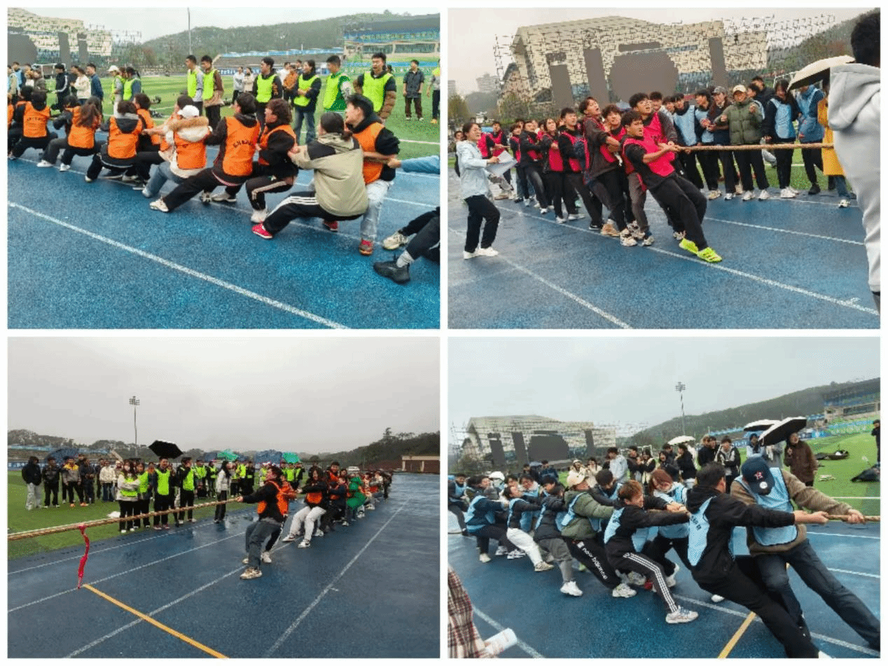 为深入开展学风建设,牢固树立“育人为本、以德为先”的理念,进一步增进师生间的凝聚力和团队协作能力,丰富同学们的校园文化生活,2024年11月21日,公司在B校区田径场开展首届“凝心杯”师生拔河比赛。本次比赛由辅导员龚佑铮主持,团总支书记刘云超、全体辅导员以及各年级参赛选手参与此次比赛。