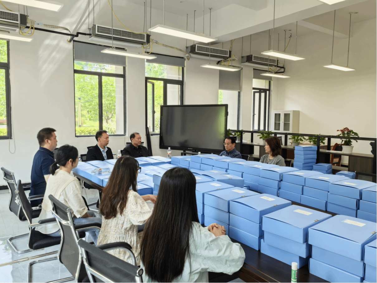 董志董事长检查公司教师档案材料后,与学院班子成员进行座谈交流。他对学院近期的教师档案工作给予充分肯定,也询问了目前工作开展的困难,提出了建议与要求。
